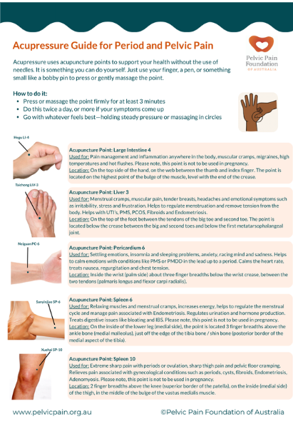 Our Easy Stretches to Relax the Pelvis guide and Acupressure for Period Pain Relief guide offer simple, practical techniques that are helpful for managing period-related discomfort. These resources focus on gentle movement, body awareness and non-invasive strategies that can be used at home or school to support relaxation and comfort during your period.