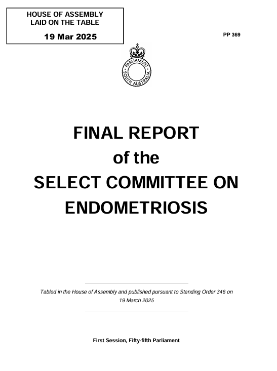 The South Australian Government has released the Final Report of the Select Committee on Endometriosis. The Pelvic Pain Foundation of Australia were proud to contribute to this landmark report.