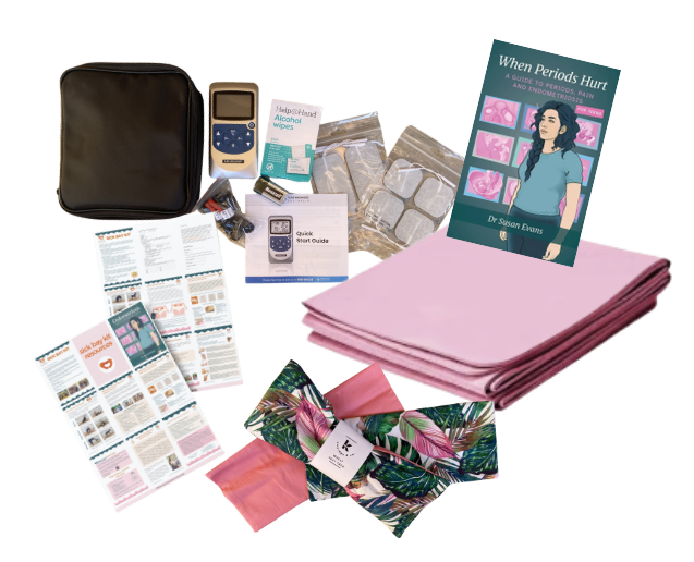 Designed for use in school sick bays and wellbeing spaces, the kit brings together practical, evidence-informed tools that support safe, non-medicated pain relief and self-management. It includes items such as a reusable heat pack, a TENS machine with clear instructions, and a branded yoga mat with guided stretches to help relax pelvic muscles. Alongside these are age-appropriate educational resources, including a teen-friendly pelvic pain book, factsheets on acupressure, stretching, mindfulness, managing period pain, and safe medication use.